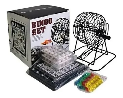 Cada juego viene con 18 tarjetas de bingo, 150 fichas de bingo, una tabla de bingo, jaula de metal, 75 bolas de plástico y las instrucciones.